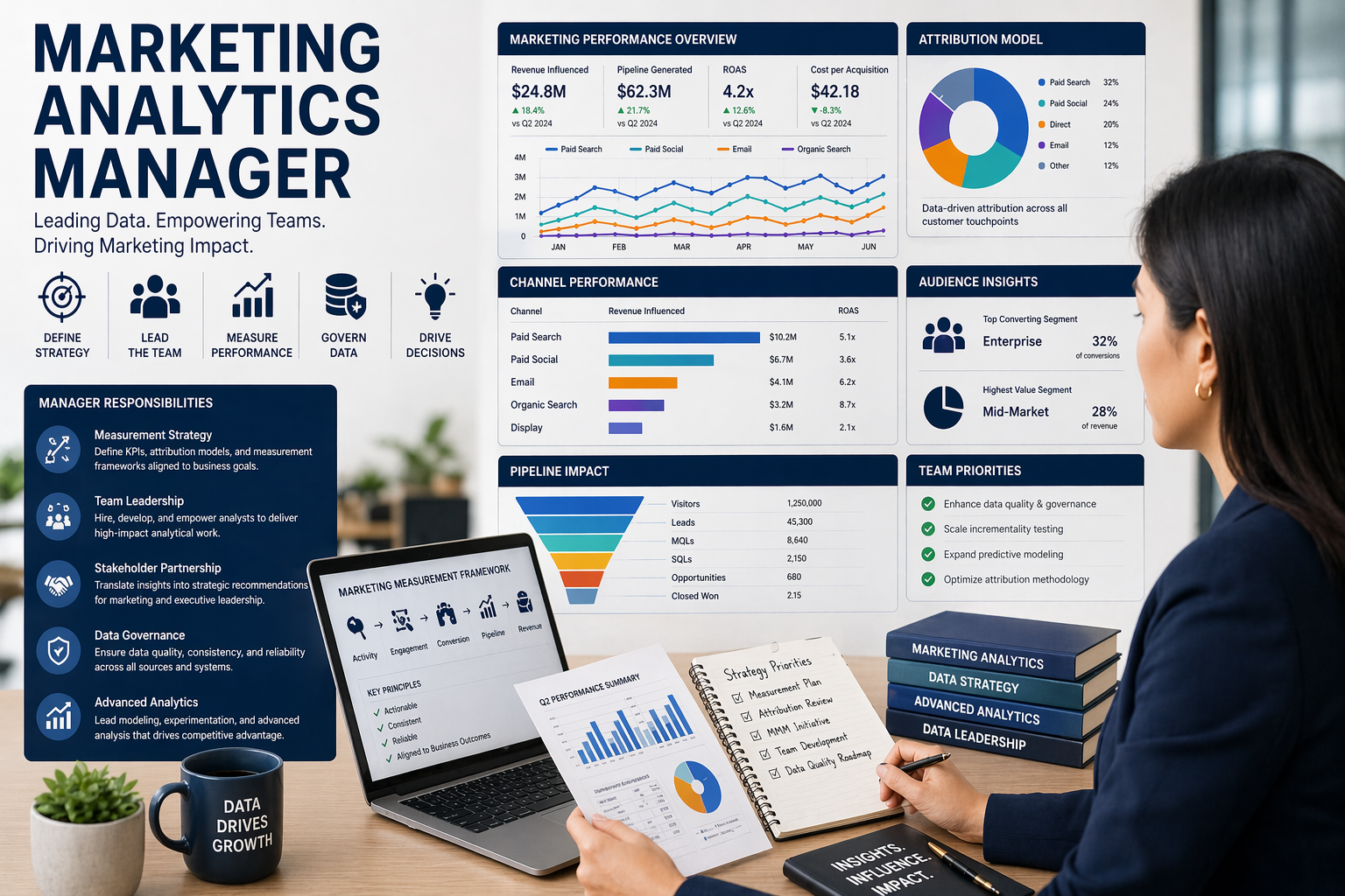 A Marketing Analytics Manager is the analytics professional responsible for leading a team of analysts, owning the measurement strategy, and translating data into the business decisions that drive marketing performance. This role sits at the boundary between individual analytical work and organizational leadership — requiring technical credibility, strategic thinking, and the ability to influence stakeholders at every level of the business.